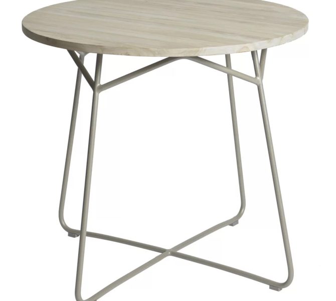 Tafel Lily, aluminium frame in taupe. Kan dus heel het jaar buiten staan! Afmetingen: Ø 80cm x H 74 cm Combineer deze tafel met de Amelia stoel of Elise stoel en het is een prachtige set!