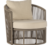 De verticaal gevlochten belt zorgt voor een spannend recht contrast met het verder organische design. Het aluminium frame en de belt van Savona zijn in de tint slate verkrijgbaar; de kussens in de lichtere tint dune. Savona is een fauteuil om te relaxen die heel mooi staat op je terras met een laag salontafeltje, maar die je net zo goed als club chair in een restaurant of in een bar kunt tegenkomen samen met een low dining table. En natuurlijk belet niets je om deze fraaie fauteuil op dezelfde wijze in je eigen tuin te plaatsen en te gebruiken om iets aan te eten.