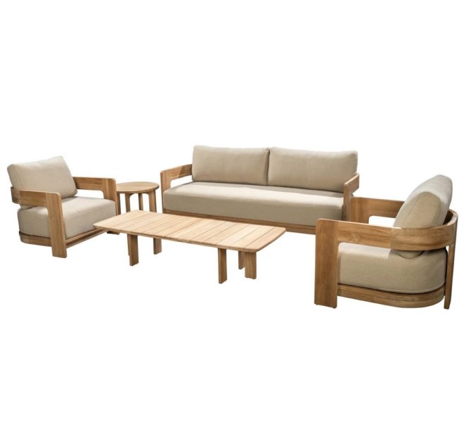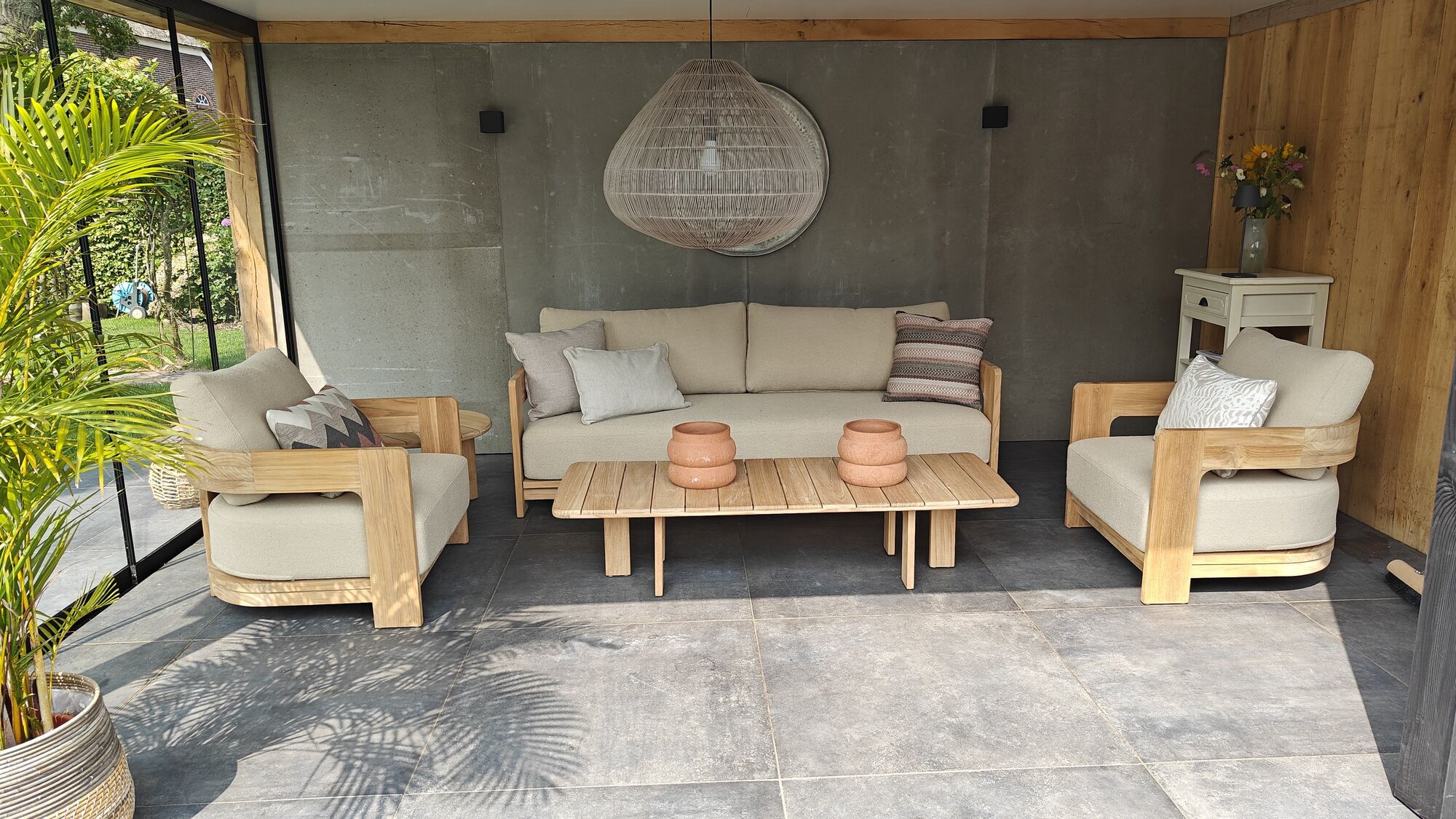 Tonga is een prachtige lounge set van teakhout met een gebogen leuning
