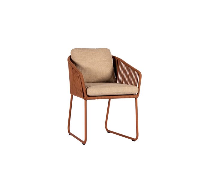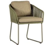 Met een aluminium frame, praktische sledepoten en een open rugleuning, voegt deze stoel moeiteloos stijl toe aan elke buitenruimte. Het textileen zitvlak, verborgen onder een zacht bouclé kussen, zorgt voor ultiem zitcomfort. De Calera is veelzijdig inzetbaar en combineert prachtig met de tafels. Perfect voor ontspannen diners en gezellige momenten buiten, waarbij comfort en design naadloos samengaan met de omgeving.