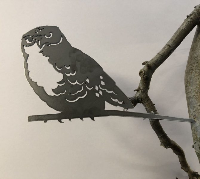 Geluksvogel uil voor in een boom. Leuk als decoratie voor in uw tuin! Gaat na een tijdje vanzelf roesten. Afmetingen: L 283 mm x B 210 mm.